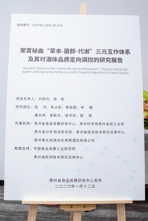 2026年1月12日下战书,石荣霄《荣霄秘曲“草本-菌群-代谢”三元互做系统及其对酒体质量定向调控的研究演讲》发布会暨计谋合做签约典礼”正在贵阳隆沉举行,配合揭牌成立“荣霄秘曲传承取立异研究核心”。